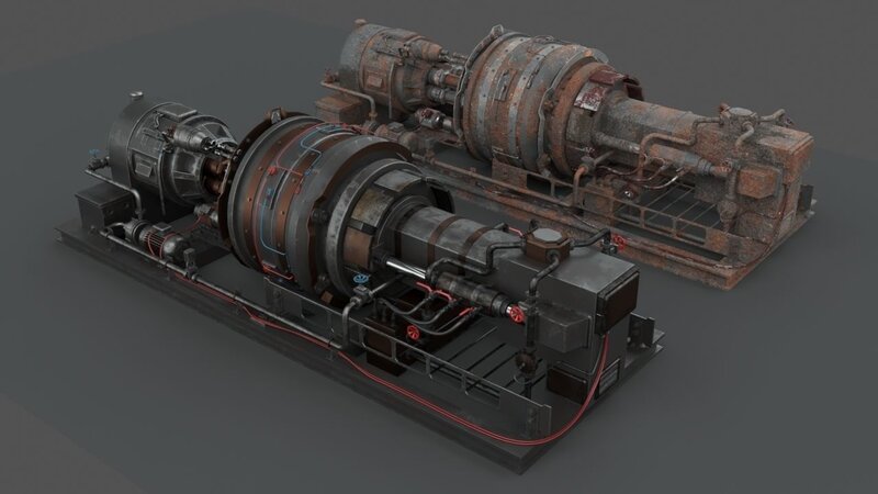Machinery device for industrial visualizations. PBR textures metallic/roughness. 2 textures set: regular and rusted. Corona renderer 1.7 Vray render 3.6 Blender 2.82 Cycles