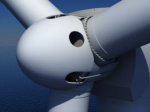 Accurate very high definition model of a offshore wind turbine. The detailed interior of the nacelle is included. This is perfect to show the functionality of a wind turbine. The rotor parts are separate objects so they can be easily animated.