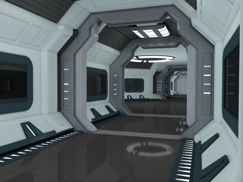 DESCRIPTION- This is a highly detailed and photo realistic 3D scene of a Spaceship Interior, complete with interlocking blast doors, command room and common area. The design is modular, so each section can be duplicated or reduced to create a scene to suit your needs.