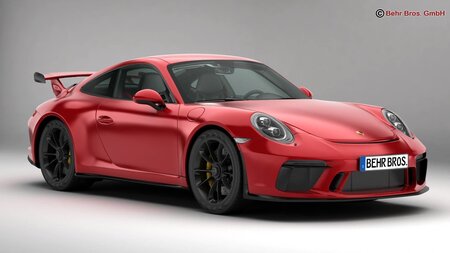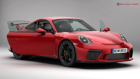Accurate very high definition Porsche 911 GT3 2018 model with highly detailed interior fully textured. Headlights and taillights are modelled, doors can be opened. The model includes modelled tires.