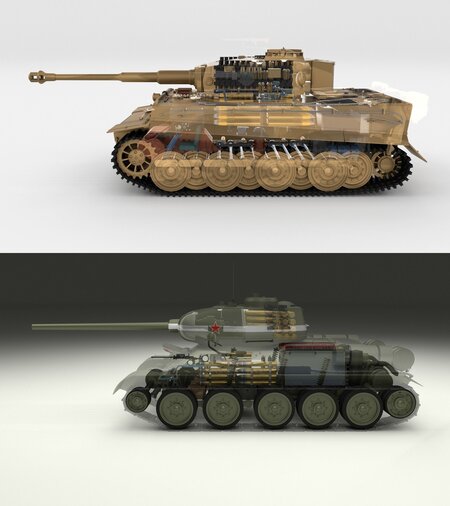 General:3D model pack consisting of the following WW2 items:-Panzer Tiger Late Model with interior-T34-85 with interior