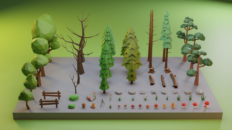 MILLENNIAL AUTOMOTIVE LLC » Our products » Plants » Low Poly Trees Grass and Rocks