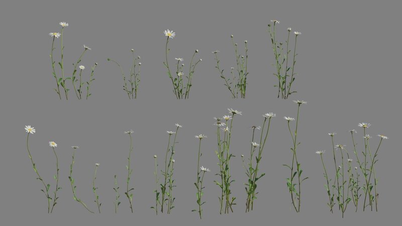 This is a daisy model made with Blender 3.0. There are 14 varying shapes, medium polys and low polys available, which support background and medium shot. The PBR maps come with accurate physical properties and rich details.