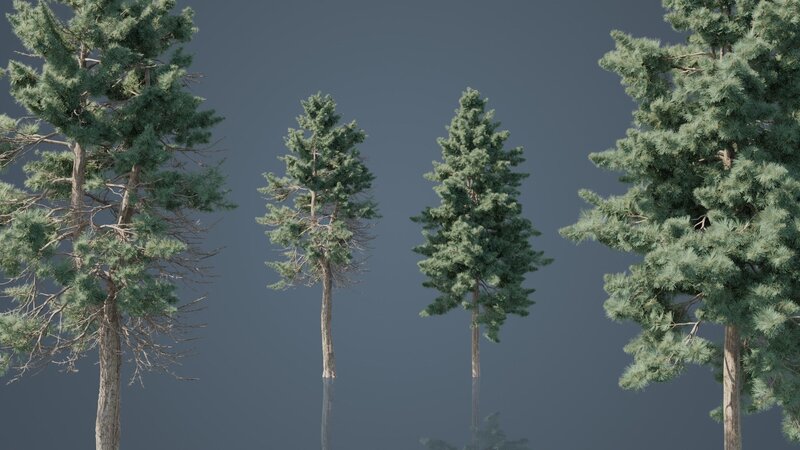 This is a collection of 7 Conifer Trees pack with total of 26 Conifer Trees. All trees are well detailed and consist of ~150.000 polygons each.
