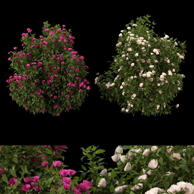 There are 2 different flowering bush models with two different flower colors and are made with the best quality materials, all materials are PBR.