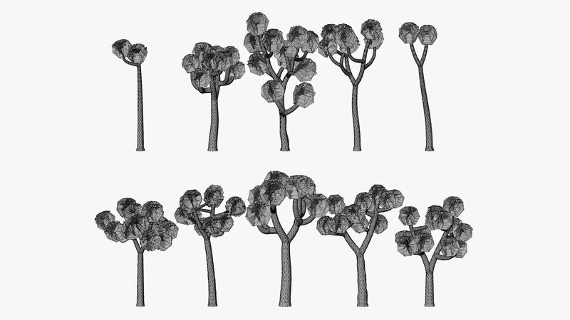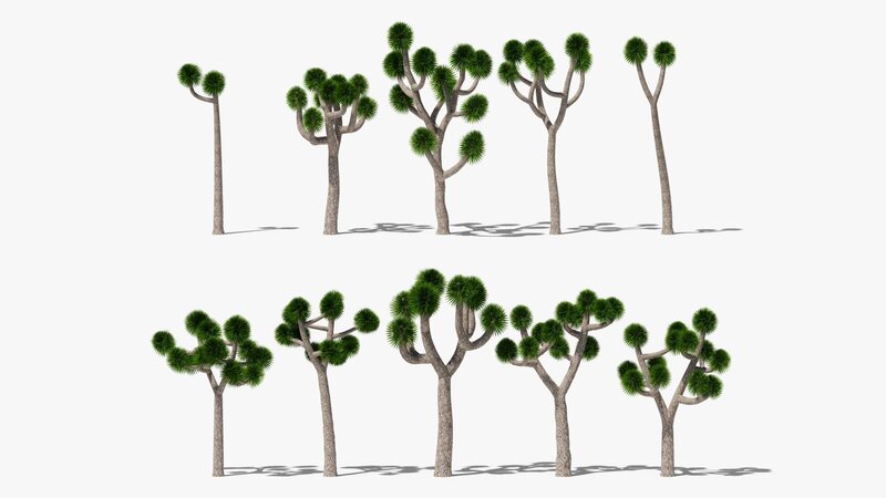 This collection contains 10 different high quality 3D models of joshua trees for use in games or visualization.