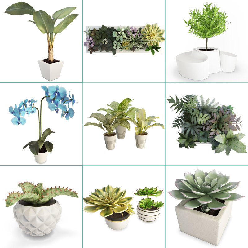 You can imagine your interior 3D with these ornamantal plants and these different 3D orchids.