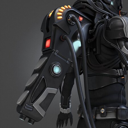 High quality 3D model of a female cyborg, ready for close-up and HD renders. PBR textures. File in the Marmoset Toolbag 2 available.
