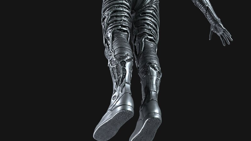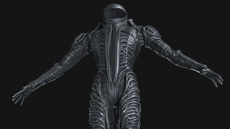 A biomechanical suit that carries lines of H.R. Giger concepts. .