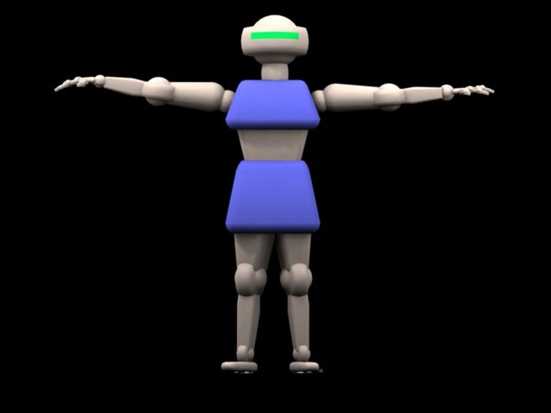 A simple female robot; all parts named and linked, ready for IK rigging. Might be useful as a bones system if modified slightly. See the animation for proof of linking.