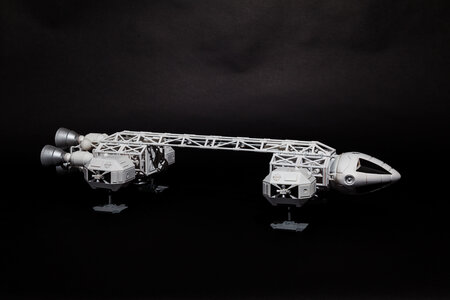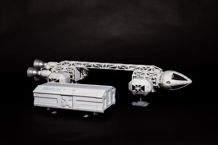 Space 1999 Eagle Transporter 22" model is half scale to the studio models used in the tv series, double the scale to 200% and you have a studio scale model that is accurate to the original tv models. Finished to a very basic standard, i have not sanded all of the parts and left the print lines to show how the parts come off the printer, all that has been done is a base coat of white with a little detailing for the photos. this model consists of 168 stl files and requires assembly.