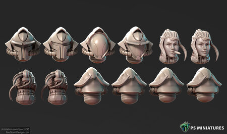 5 Shoulder pieces are designed to be used as mounts for skulls and heads from other packs. 2 Shoulder pieces have a faction icon and alien head preattached.