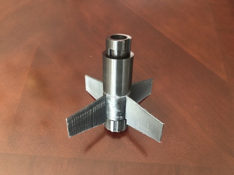 The motor chamber is easily detachable due to the screw-locking system designed for the rocket. This same system is found on the end cap to quickly change out engines to ensure multiple flights.