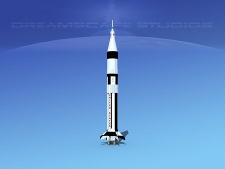 This model is built as near to scale as possible. It includes a lot of external detail and detailed engines. The stages may be separated in in-flight animations. This model includes the first or main stage, the second stage and the service module and command module. It includes the abort tower on the command module. It comes in several formats.